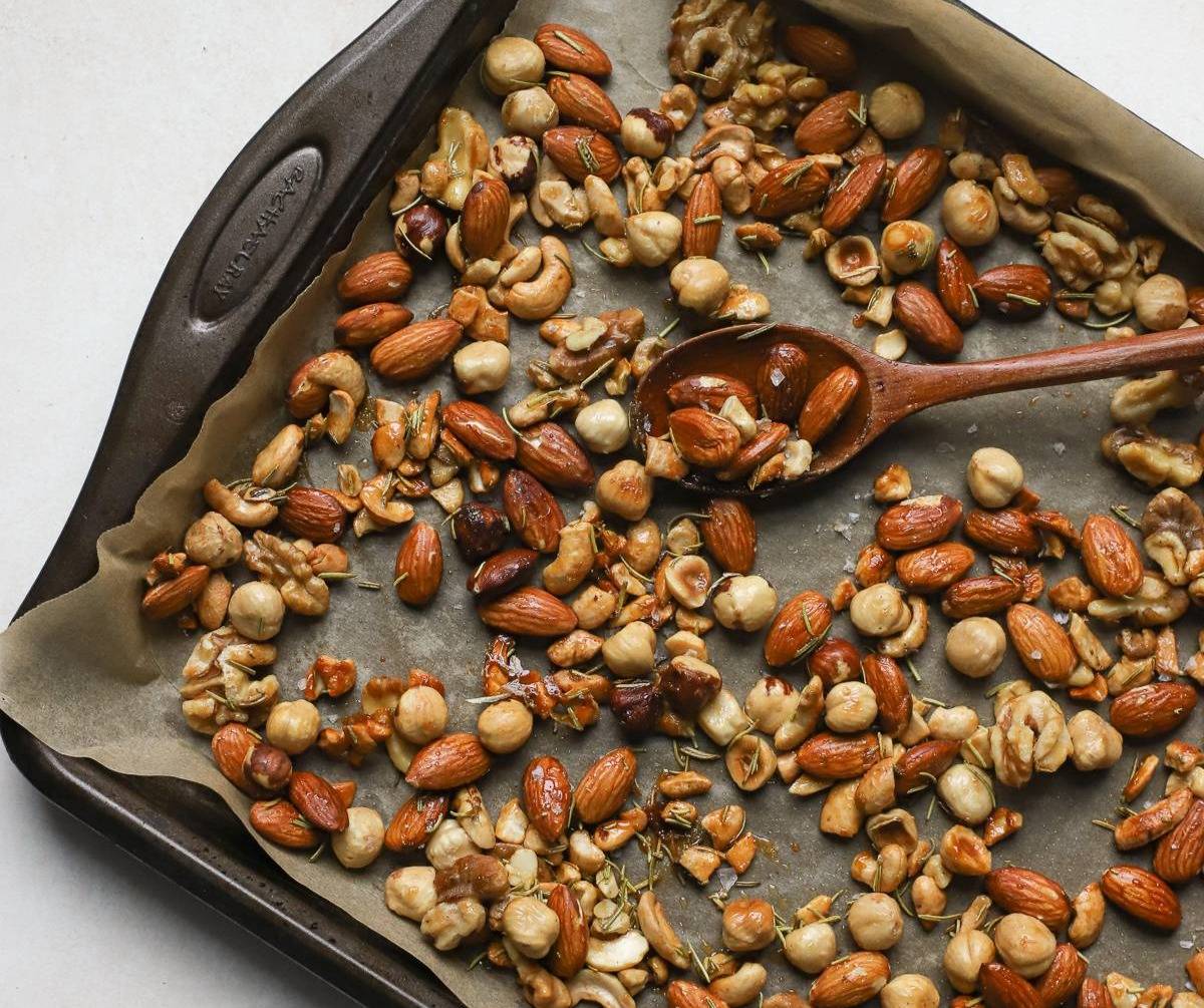 5. Quick Roasted Rosemary NutsThese rosemary nuts are bonkers good! With a touch of maple syrup, earthy rosemary, and flaky salt... this appetizer tastes gourmet but only takes 15 minutes to make.